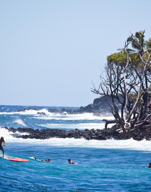 1950年代、オアフ島西部のマカハやノースショアのワイメア湾で、サーファー達が巨大な冬の大波(ビッグ・ウェイブ)に乗るようになりました。ハワイにおけるビッグ・ウェイブのシーズンは11月から2月頃、ノースショアで波が大きくなります。どの島でもサーファーが波に乗る様子を見ることができますが、世界屈指のサーフィン競技会の数々がオアフ島のノースショアで11月と12月に開催されており、中でもバンズ・トリプル・クラウン・オブ・サーフィンは最大の大会となっています。これらの競技会で活躍するプロ・サーファーの姿を見に行く予定のある方は、渋滞が予想されますので、早めにお出かけになることをお勧めします。