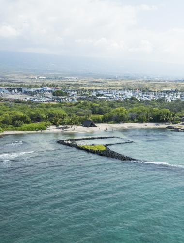 コナ国際空港から車で北に20分程のコハラ・コースト。ここは最高級リゾート・エリアで、超一流ホテルやレストラン、ゴルフ・コースが揃います。一方、自然考古学保護地区や神殿を復元した国立歴史公園、人気のビーチもあり、家族で楽しむのに最高の場所です。