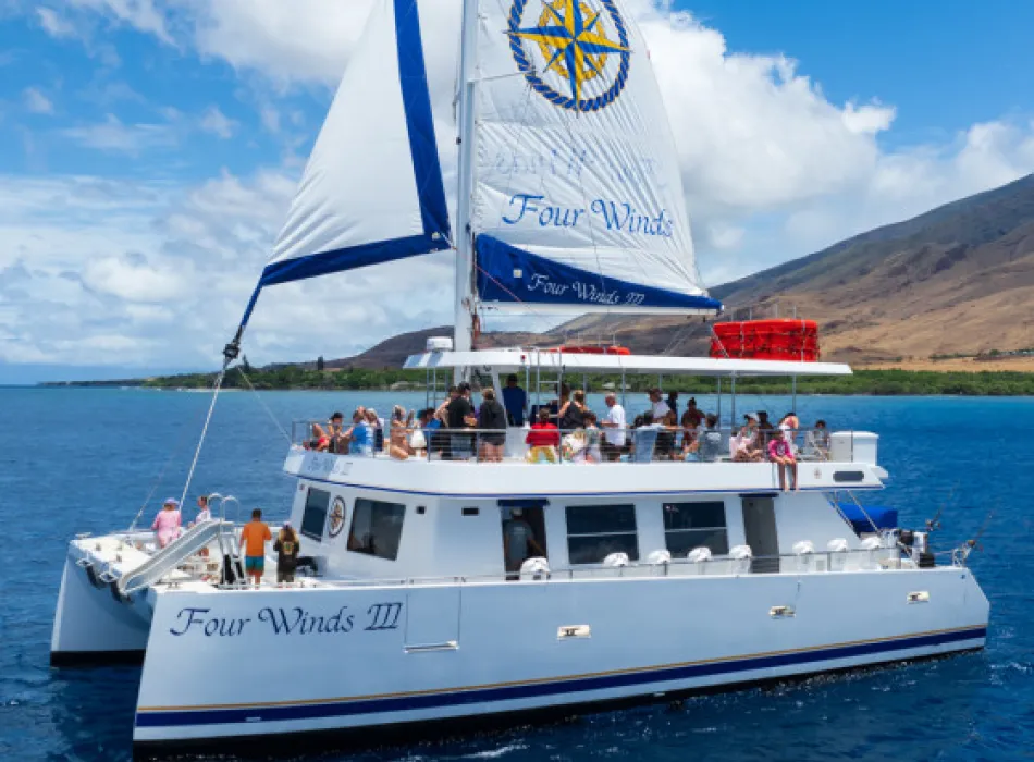 The Four Winds morning snorkel tour to Molokini Crater gives you Maui’s best snorkeling value and experience. Molokini Crater, located 3 miles offshore, is Maui’s premier snorkeling destination. The Four Winds II is known for it’s family friendly features and offers the best snorkeling on Maui. Enjoy extended time at Molokini Crater with plenty of time to snorkel, relax, and dine at your leisure.