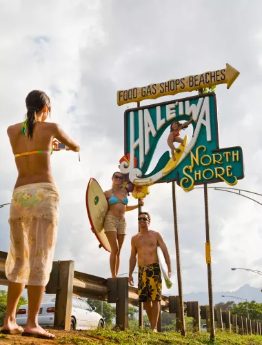 冬場は巨大な波、ビッグ・ウェイブを求めてサーファーが集まるノースショア。ビーチでウミガメを見たり、虹色のシェイブ・アイスを片手にハレイワ・タウンを散策したりと、ハワイらしいゆったりした時間を楽しめます。